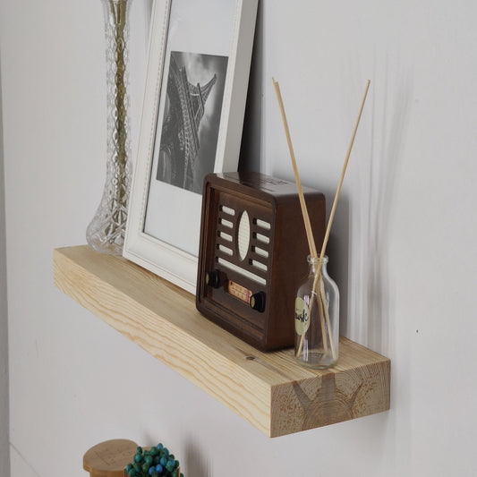 Doğal Ahşap Kalın Duvar Rafı Farklı Ölçü ve Renk Seçenekleri