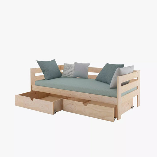 Modüler Sistem Yavrulu Karyola Ve Sedir Koltuk Doğal Ahşap