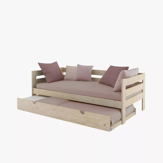 Yavru Yataklı Montessori Bebek ve Çocuk Karyolası Doğal Ahşap