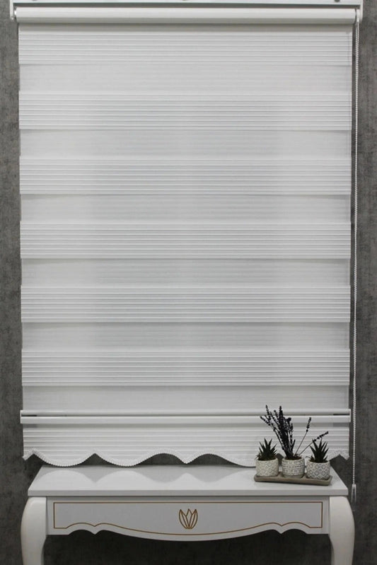 Beyaz Geniş Pliseli Zebra Stor Perde Etek Dilimli