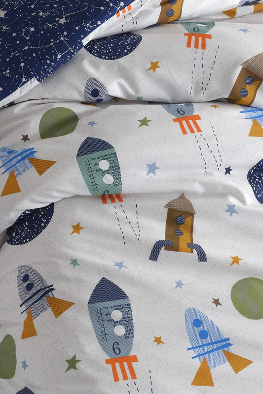 Children's Duvet Cover Set Single Spacex Navy Blue
