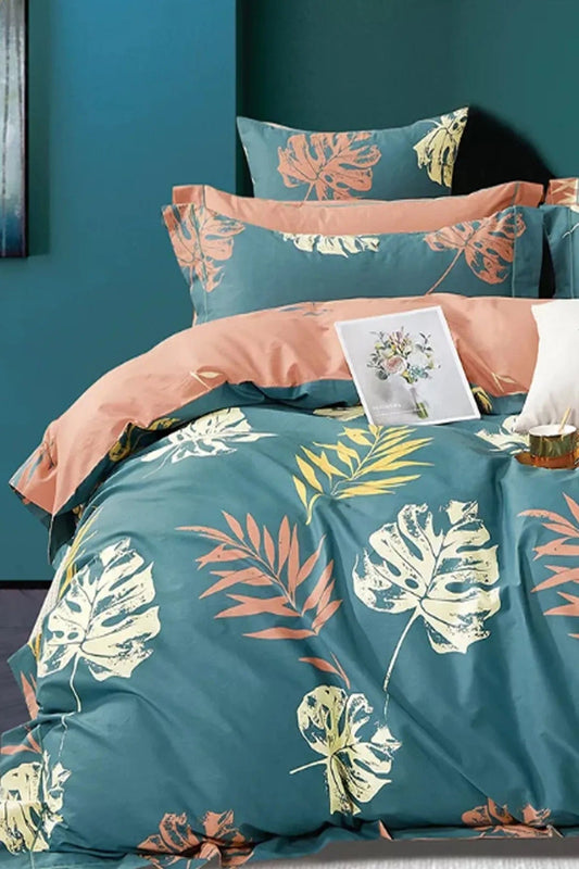 Duvet Cover Set with Fitted Sheets, Double Leaf Petrol